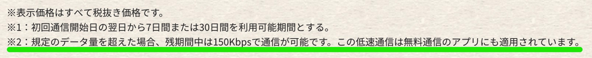 念のため付け加えておくと、FREETELのポストペイド向けのサービス内容には同様の記載はないので「規定容量を超えたら通信速度低速化の対象」はプリペイドSIM向け限定の可能性がある。