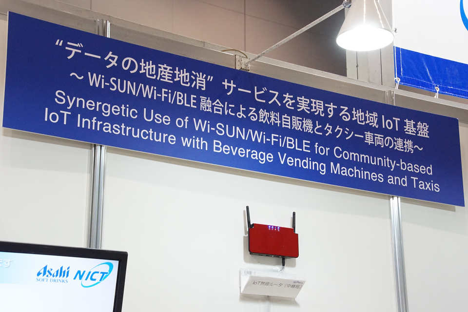 ワイヤレスジャパンでは各企業が自社のサービスや製品を発表し商談を行うほかにも、大学や研究機関などが通信技術に関する実証実験や研究成果の発表を行っています。国立研究開発法人情報通信研究機構(NICT)のブースもまた最先端の通信技術を用いた実証実験などを発表・展示しており、今回はその研究成果の中からBLE(Bluetooth Low Energy)やWi-SUNを用いたIoTソリューション活用の例をご紹介します。