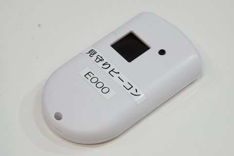 展示されていたビーコン端末は自動送信タイプとプッシュ送信タイプの2種類があり、説明員によれば認知症の方の徘徊などを防止する目的の場合は自動送信タイプを、子供の安全を確保する目的の場合はプッシュ送信タイプを用いるなど、用途に応じた使い分けを想定しているとのことでした。