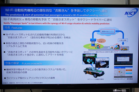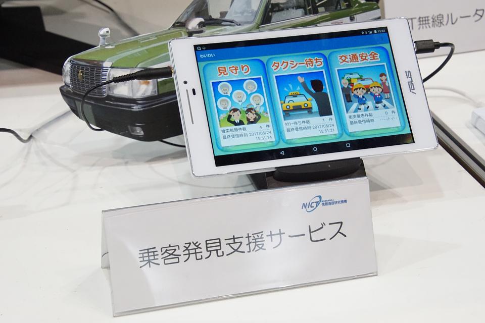 非営利の地域サービス以外にビジネス的な利用方法の提案を積極的に行っているのもNICTの面白いところです。BLE/Wi-SUNビーコン端末の場合、その位置情報を使ってタクシーの効率的な集客を提案しています。