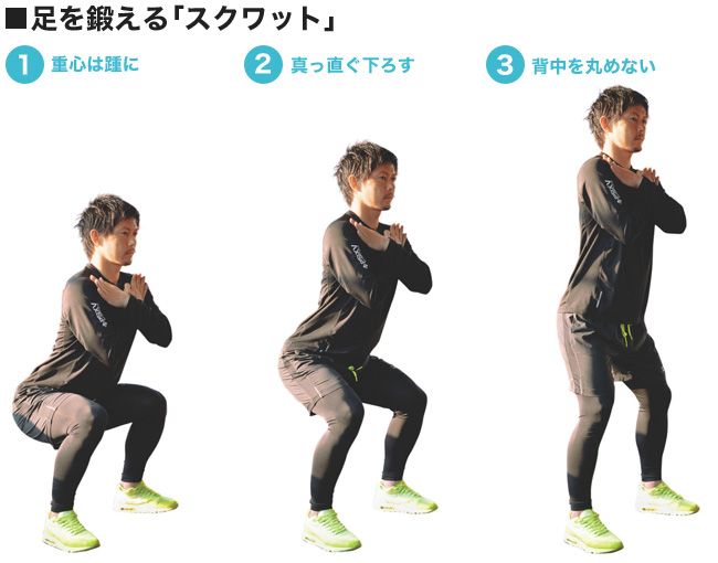 そこで、ここでは足、腹、背中という体への影響力の高い筋肉を鍛えるシンプルなメニューを4種類ご紹介しました(各ページ写真参照)。