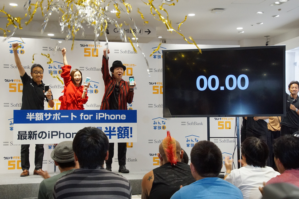 iPhone行列に異変あり? iPhone 8などの発売を記念したソフトバンク銀座の店頭セレモニーの様子を写真とともに紹介――上戸彩さんや古田新太さんが登場【レポート】