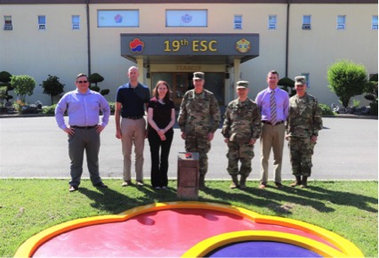 写真)在韓米軍の第19遠征支援司令部(19th Expeditionary Sustainment Command)ジョン・サリバン司令官とエリザベス・コードレイ国防次官補代理