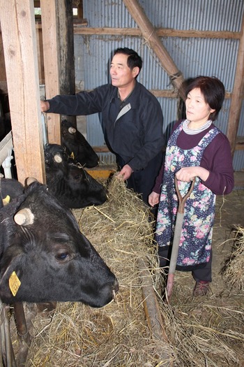 飯舘村に計画的避難の方針が伝えられた翌日、牛舎で佐野さん夫妻は途方に暮れた(2011年4月12日)