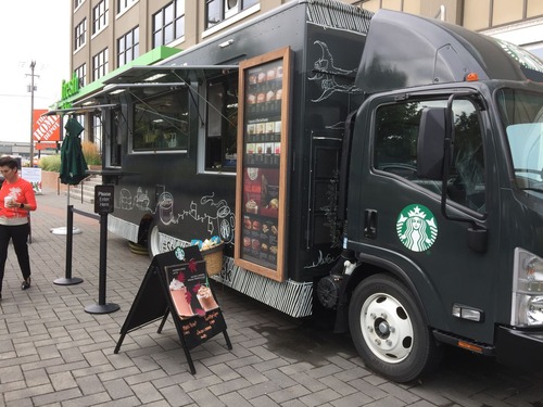 トップ画像:スターバックス本社前にあるスターバックス・モバイル・トラック。モバイルオーダー&ペイでの注文も可能だ。