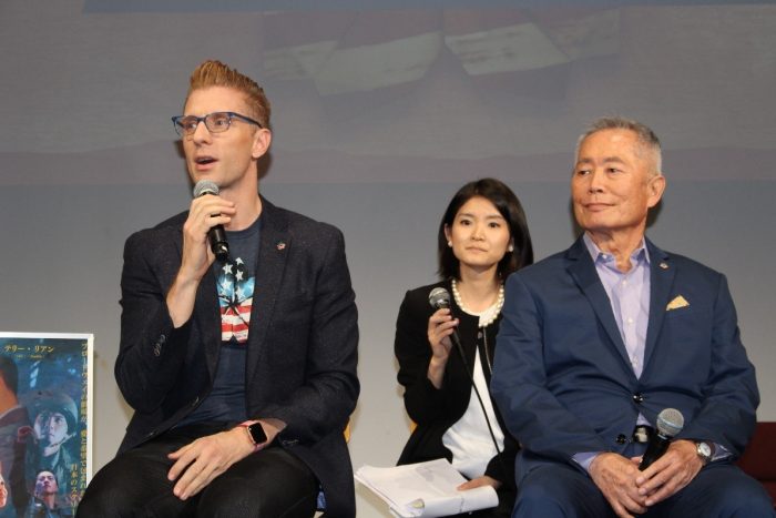 11月10日からの3日間限定の公開に先立ち、9日東京・恵比寿にて、世界的に有名な日系人俳優であるジョージ・タケイ氏、プロデューサーのロレンゾ・シオーネ氏、今、ブロードウェイで注目されるアジア系ミュージカル女優のエレナ・ワン氏が来日し、舞台挨拶を行った。