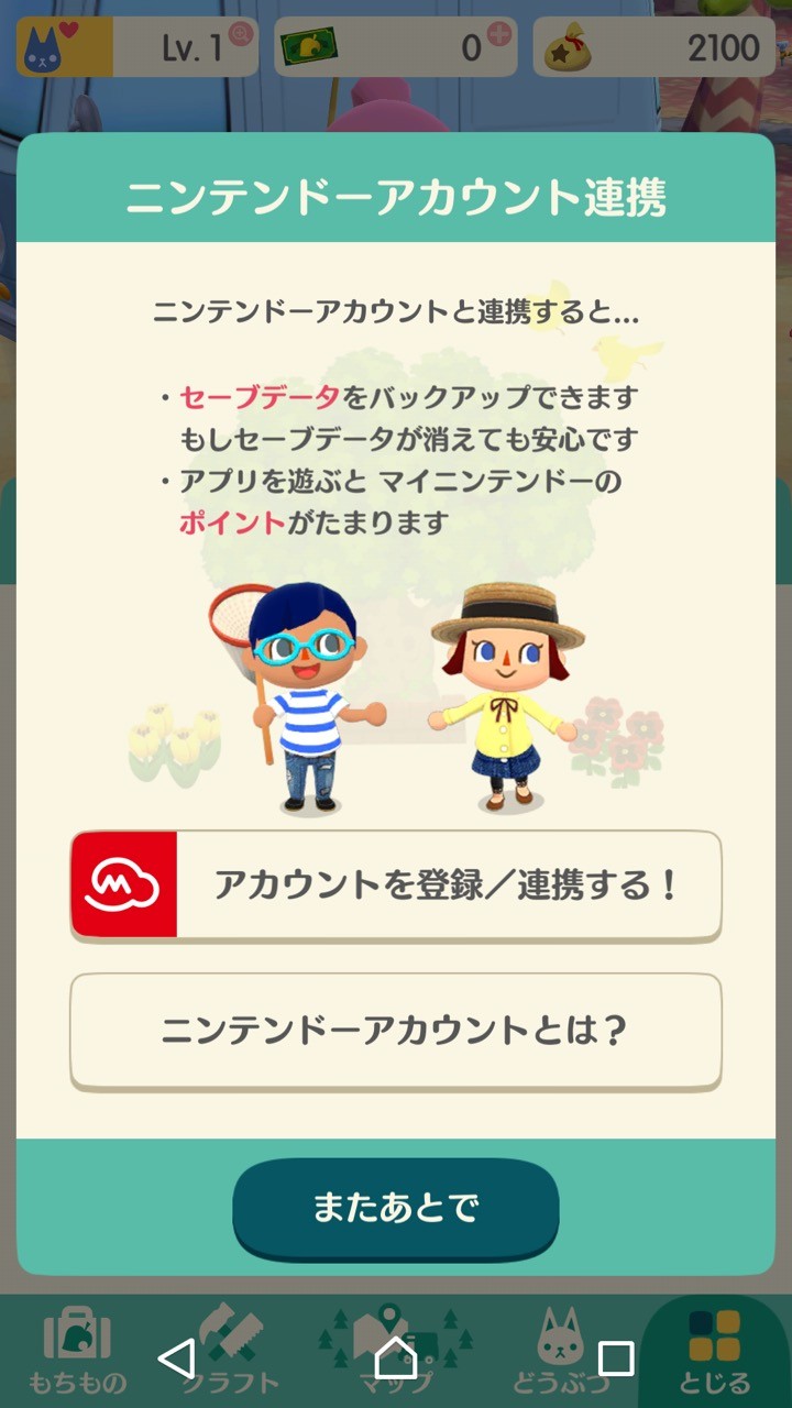 プレイデータのセーブは自動的に行われますが、万が一に備えてニンテンドーアカウントとの連携をはじめに行っておくと良いです。タイトル画面、もしくはプレイ画面のメニューから、「設定」 > 「ニンテンドーアカウント連携」からニンテンドーアカウントの登録や連携が可能です。