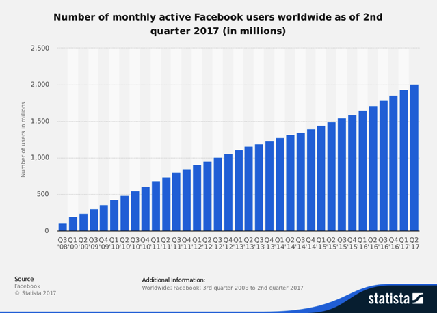 Facebookのユーザー数は今や20億……。伸び続けています。