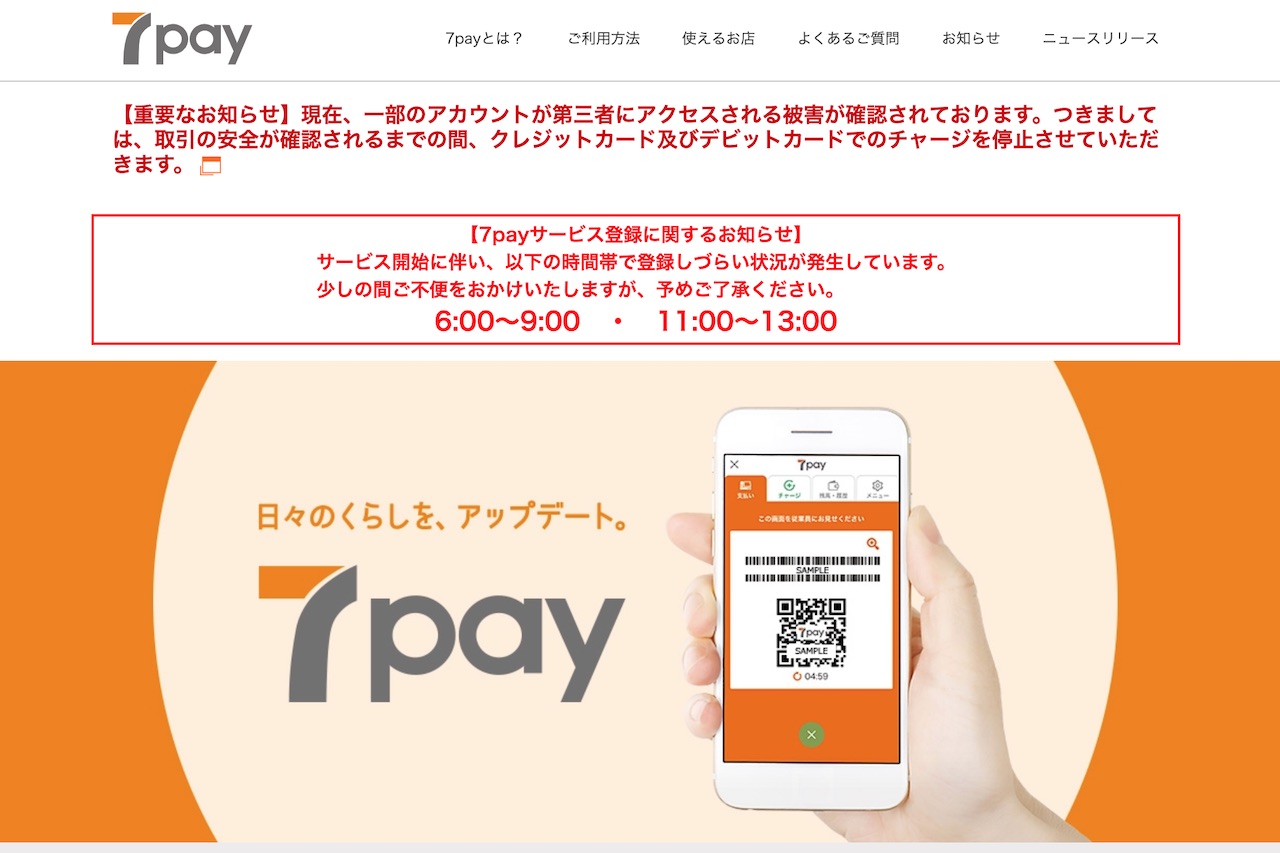 セブン-イレブンの独自コード決済サービス「7pay」で不正アクセス・不正利用の被害が発生!クレジットカードとデビットカードからのチャージを一時停止