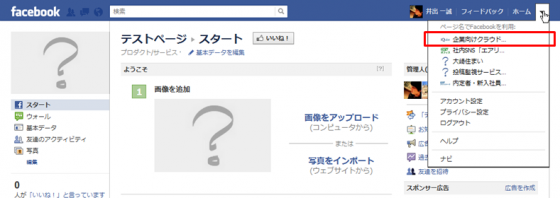 ※Facebookページ人格は以下のように「ホーム」ボタン横の「▼」ボタンから選択できます。