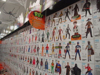 トップ画像:全米に500店以上を展開するパーティ用品チェーンストアのパーティシティのコスチューム(サンプル)売場。多くが20ドル〜30ドルとなっている。アクセサリーなど小物もそろえれば結構な額となる。