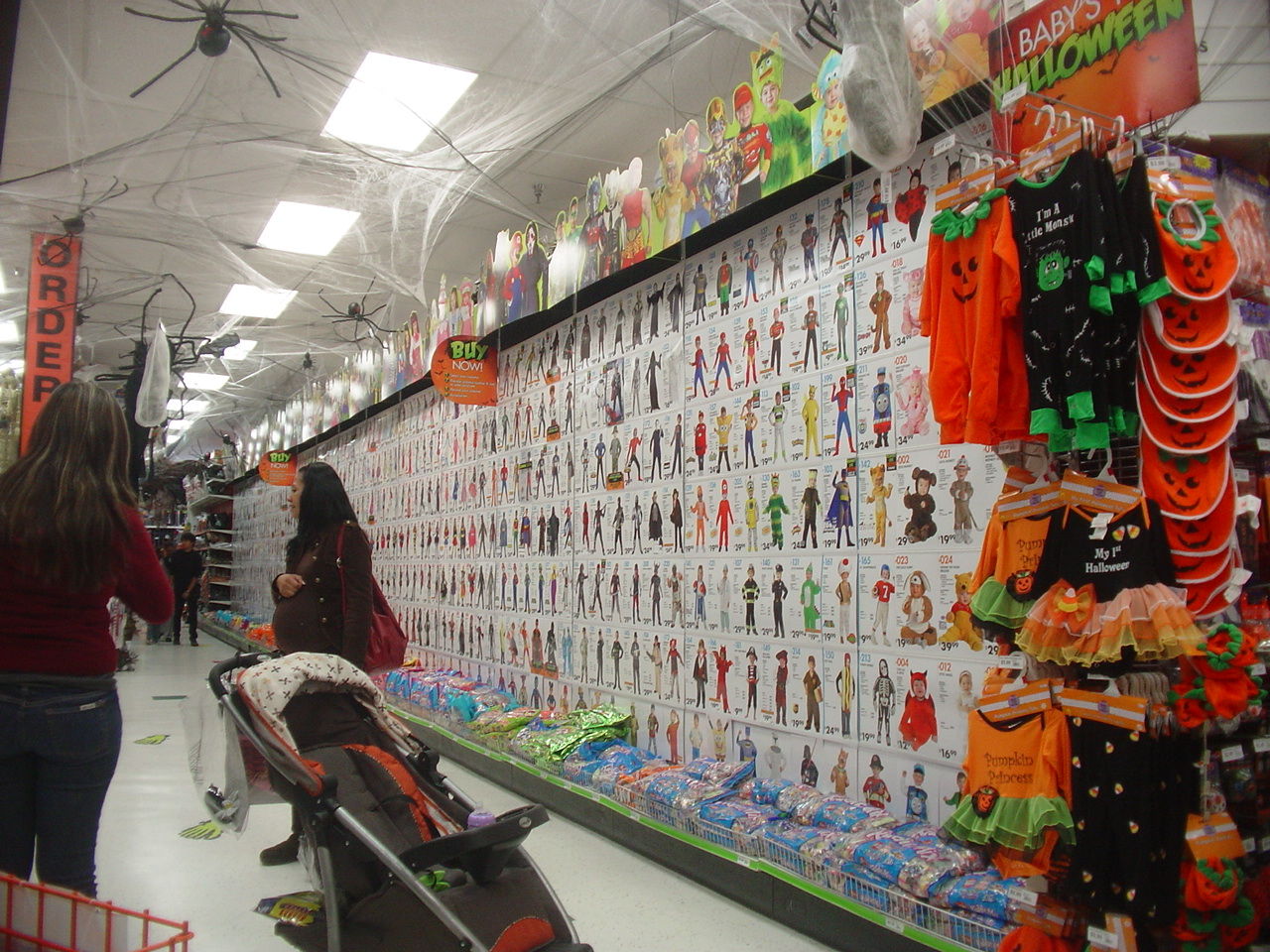 ハロウィンはパーティシティにとって書き入れ時だ。午前中から午後にかけて母親が子供用のコスチュームを買いにくる一方で、夕方からはアダルトも買物だ。朝から売り場は盛況だ。