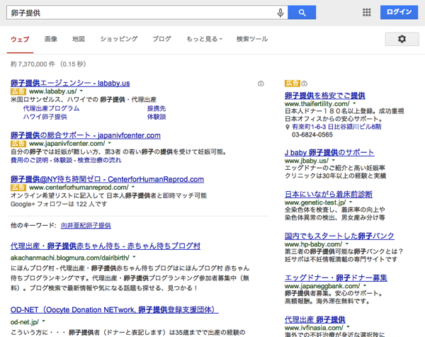 玉置:はい、たくさんあるんです。代理出産、卵子提供という検索するとずらっと出てきますよ。