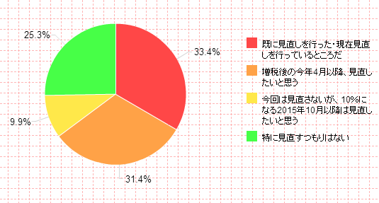 続いて、下のグラフは「家計見直しの意向」に関する回答結果です。何とも評価の難しいところですが、見直さないとする家計が 1/4 ある一方で、やっぱり、かなりの家計で見直し機運が高まっていることは確かであろうと思います。もちろん、このような調査に対する回答なんですから、見栄を張って回答している可能性があり、その分のバイアスは考慮すべきかもしれません。また、家計の見直しがいつまで続くのかも不明です。