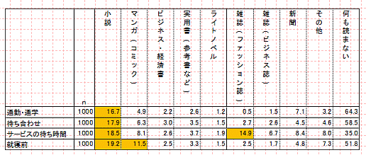 まず、「読書に関するインターネット調査」と銘打ちながら、実は、スキマ時間の読書にほぼ限定されており、スキマ時間の読書ではない本格的な読書については対象外とされているような印象を私は受けています。「スキマ時間」は4点例示されており、第1に通勤・通学、第2に待ち合わせ、第3に病院などのサービスの待ち時間、第4に就寝前となっています。たとえば、私がエコノミストの仕事をしている時、典型的には大学の教員をしていた時などに講義や研究などの必要に応じて、業務の必要上、調べもので本や雑誌を読むのは対象外なのだという気がします。念のため。