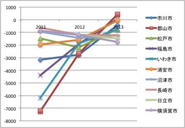 2012年の転出超過ワースト3は、なんと市川市、郡山市、松戸市
