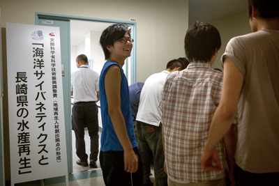 高校を卒業して漁業の道に進んだ村田さんが無縁だと思っていた大学と出会ったのは2010年夏のこと。長崎大学水産学部が2007年度から始めた水産業活性化のための人材育成プログラム「海洋サイバネティクスと長崎県の水産再生」という講座を知ったのがきっかけだった。