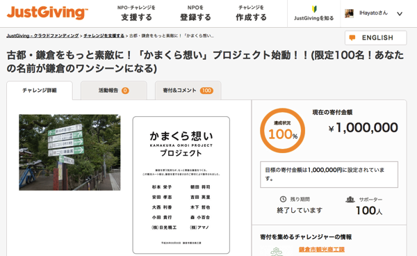 画像を見る見ていただくのが早いので実例を紹介すると、鎌倉市が「観光板の設置」のためにクラウドファンディングを活用しています。