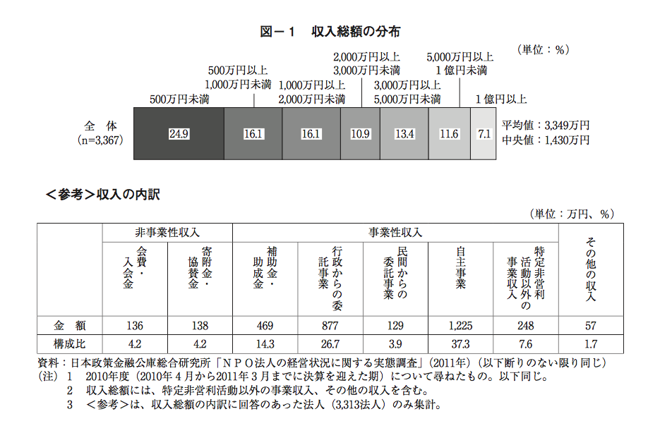 まず、NPOのお金の実態、全国のデータがこれ。